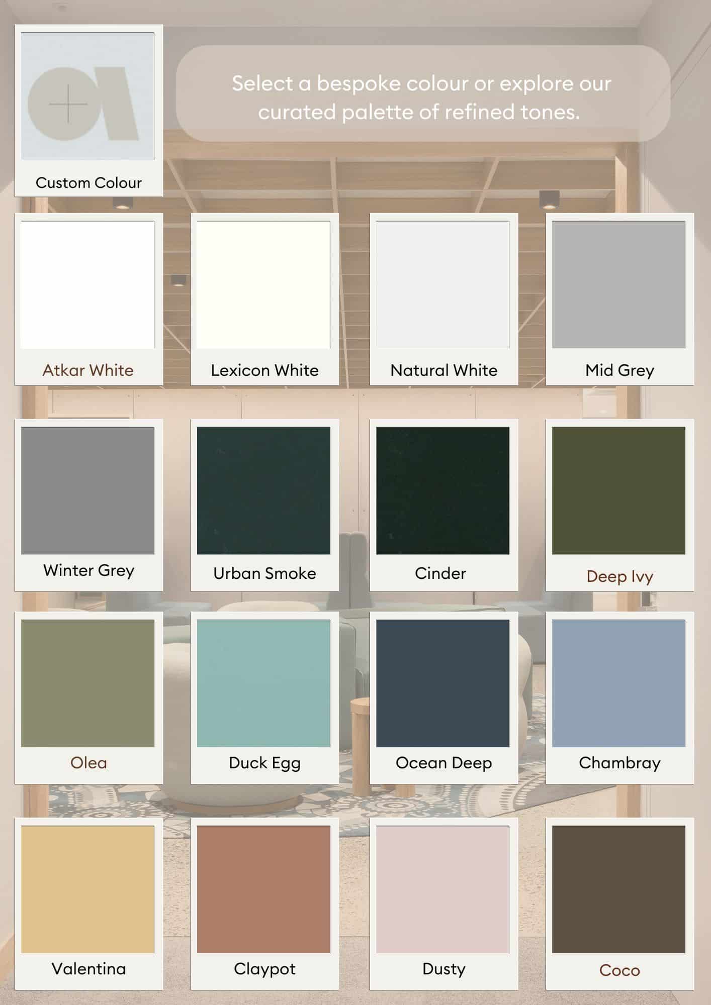 Inluxe Colour can be used with the following Atkar Group Products: